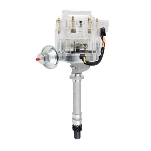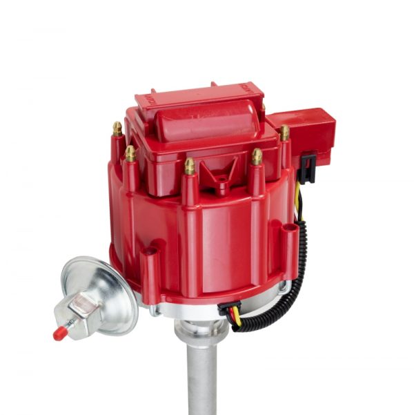 TSP’s HEI Distributor has everything you need, all under one cap. With a high-quality aluminum housing and hardened steel dual bushing construction, it is built to last. It features fully adjustable mechanical and vacuum advances, meaning precision is a breeze. It has a high-output module, high-spark 65,000 volt coil, solid brass terminals, and an easy one-wire hookup. This distributor also comes with a mechanical tachometer drive, so it’s perfect for Corvette applications.