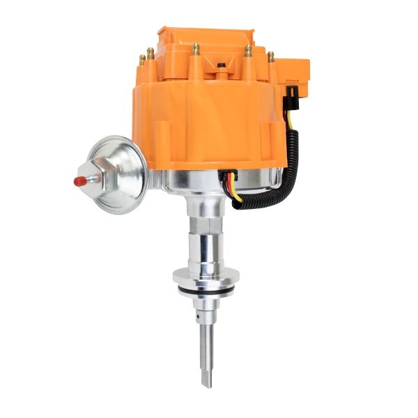 TSP’s HEI Distributor has everything you need, all under one cap. With a high-quality aluminum housing and hardened steel dual bushing construction, it is built to last. It features fully adjustable mechanical and vacuum advances, meaning precision is a breeze. It has a high-output module, high-spark 65,000 volt coil, solid brass terminals, and an easy one-wire hookup.