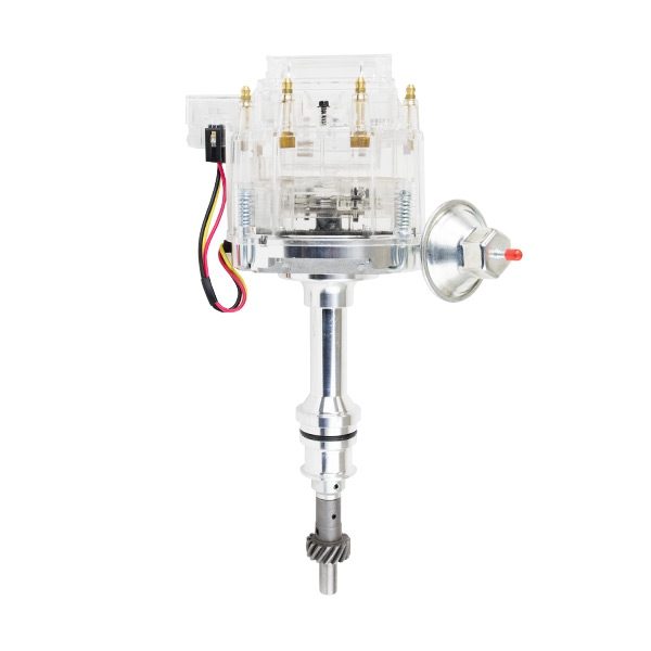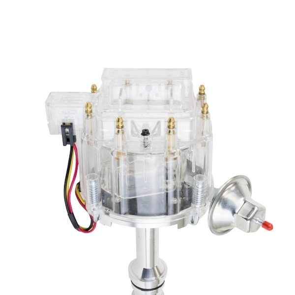 TSP’s HEI Distributor has everything you need, all under one cap. With a high-quality aluminum housing and hardened steel dual bushing construction, it is built to last. It features fully adjustable mechanical and vacuum advances, meaning precision is a breeze. It has a high-output module, high-spark 65,000 volt coil, solid brass terminals, and an easy one-wire hookup.