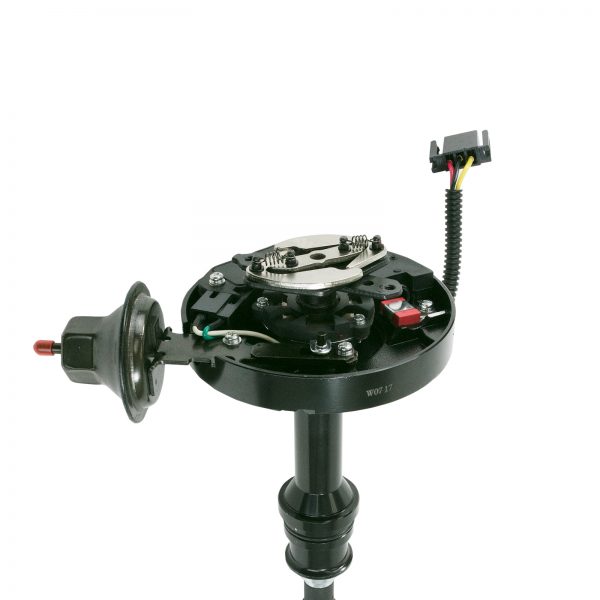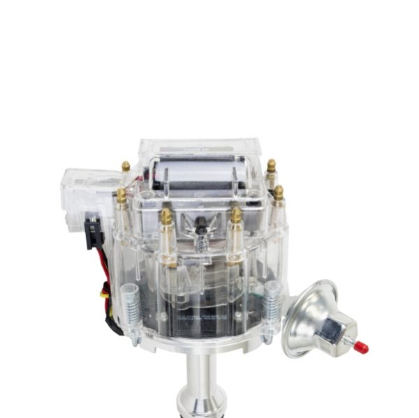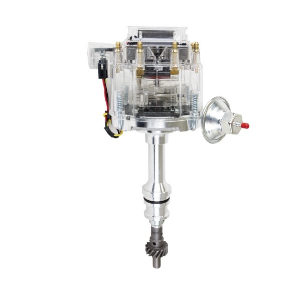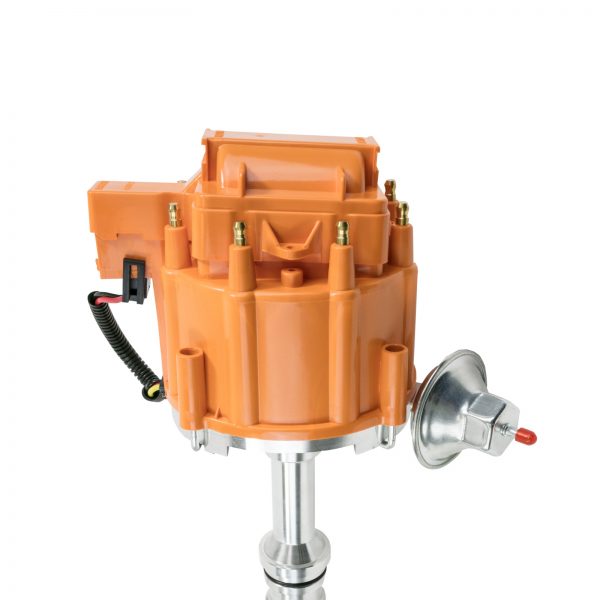 TSP’s HEI Distributor has everything you need, all under one cap. With a high-quality aluminum housing and hardened steel dual bushing construction, it is built to last. It features fully adjustable mechanical and vacuum advances, meaning precision is a breeze. It has a high-output module, high-spark 65,000 volt coil, solid brass terminals, and an easy one-wire hookup.