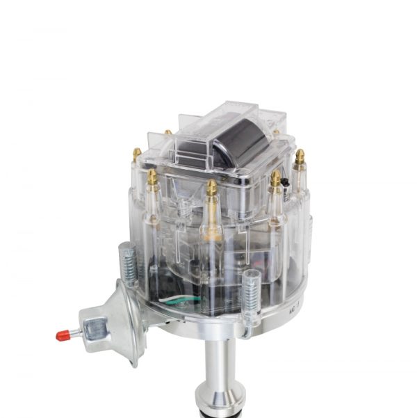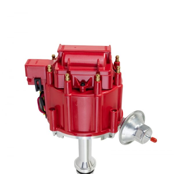 TSP’s HEI Distributor has everything you need, all under one cap. With a high-quality aluminum housing and hardened steel dual bushing construction, it is built to last. It features fully adjustable mechanical and vacuum advances, meaning precision is a breeze. It has a high-output module, high-spark 65,000 volt coil, solid brass terminals, and an easy one-wire hookup.