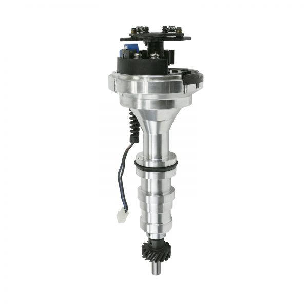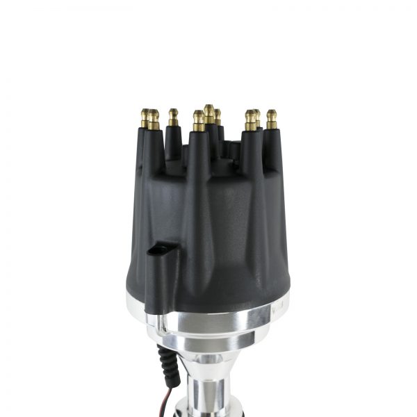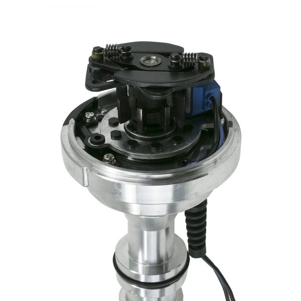 TSP’s Pro Series Pro Billet Distributor is for the racer who needs added spark and precision for their high performance power plant. It features a high quality, fully adjustable mechanical advance and an accurate magnetic pick-up trigger. The CNC-machined aluminum body and hardened steel shaft, guided by a sealed ball bearing on top and a sintered steel bushing on the bottom, ensure stability up to 10,000 RPM. The distributor can be locked out and features solid brass terminals and a color-matched wire retainer.