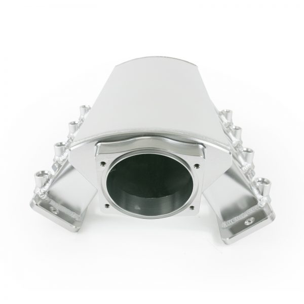 We designed our fabricated aluminum sheet metal intake manifold to improve the look and performance of your LS engine. It features a 102mm throttle body opening for maximum air flow. The runners are velocity stacked, allowing air to move more smoothly at high velocities. The manifold is constructed of 3.5mm thick T-6061 aluminum and is TIG welded to ensure consistent strength and performance. Individual port o-rings guarantee a good seal with the cylinder heads and throttle body. Available in clear or black anodized finishes, this manifold will also give your engine bay a nice, clean aesthetic.