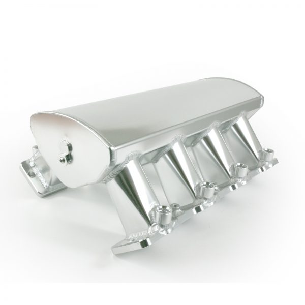 he first thing people notice when taking a closer at our intake manifold is the beautiful TIG (tungsten inert gas) welding throughout – all done by hand. This ensures solid construction that won’t fail under stress. The head flanges are 7/16″ thick, and the plenum is constructed of 3.5mm T-6061 aluminum, which means it can easily handle up to 25 lbs of boost – more than enough for most street performance applications.
